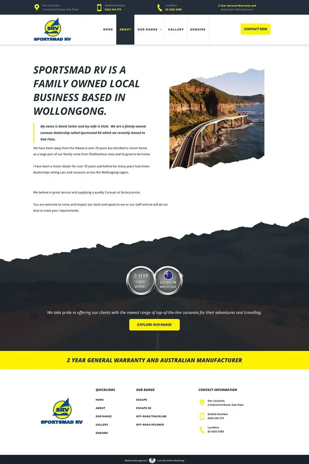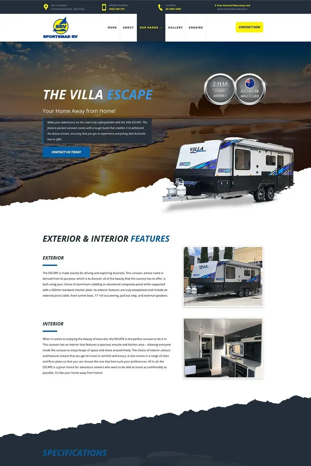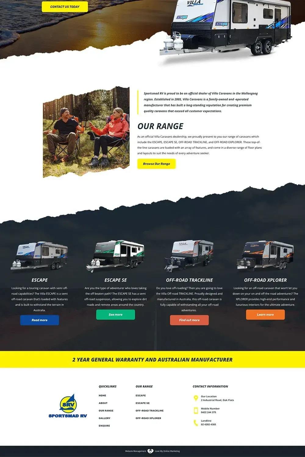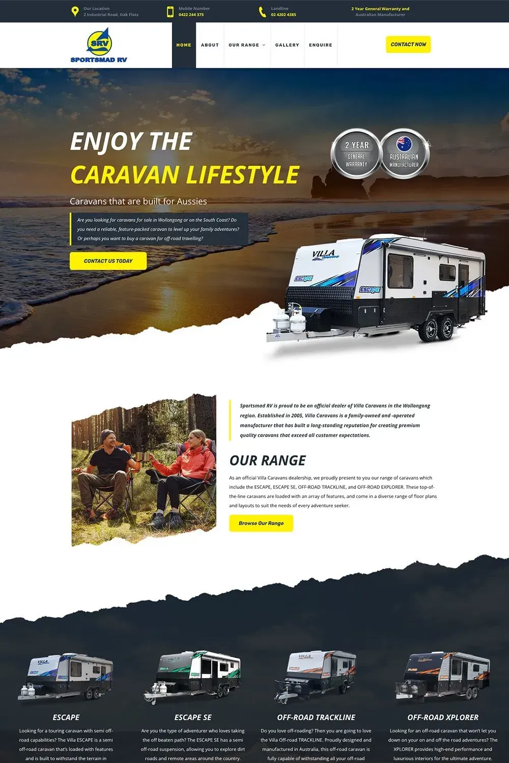 Sportsmad RV is a Wollongong-based dealership of Villa Caravans that approached our team for a complete website.