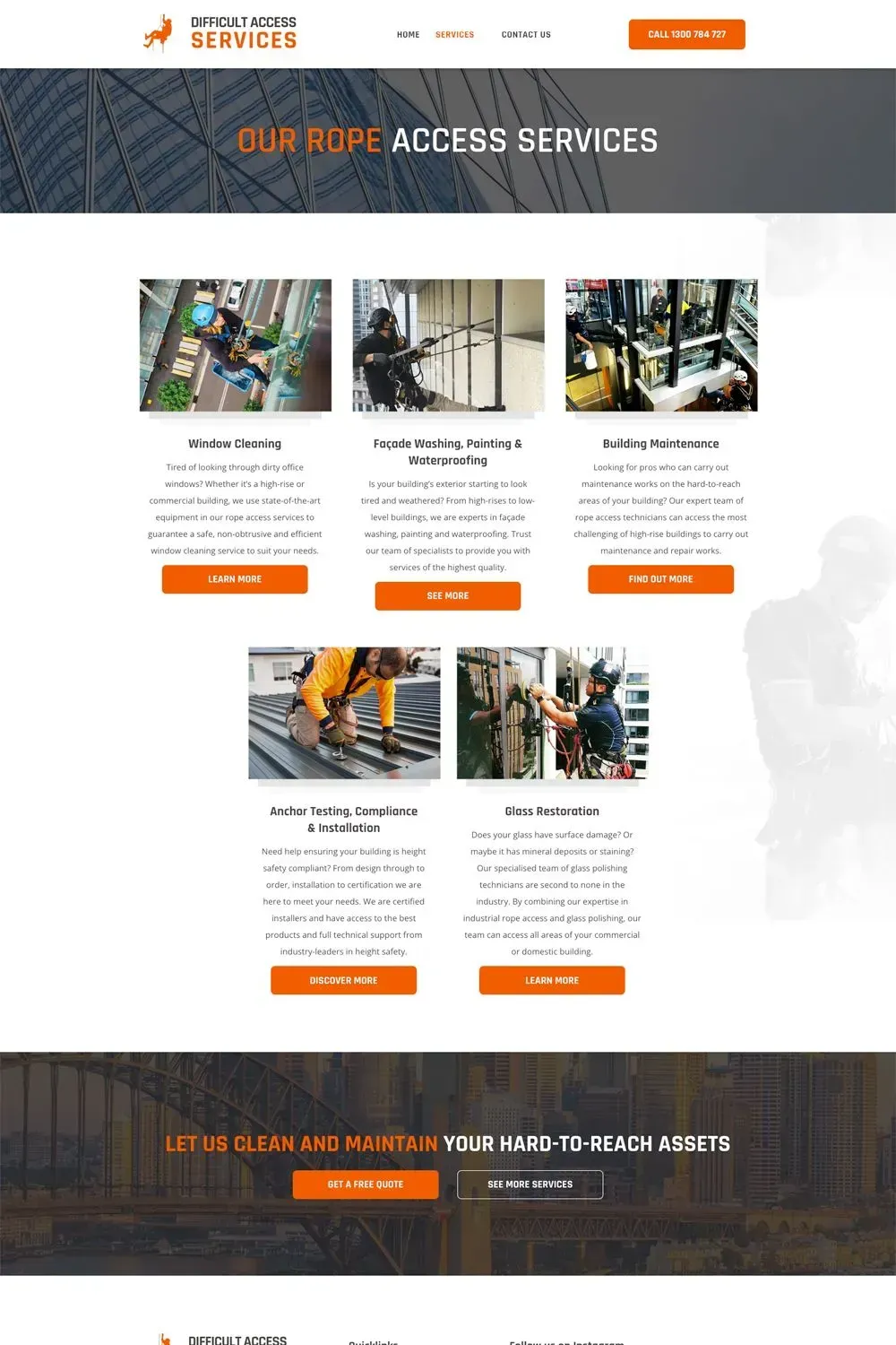 Anyway, the guys over at Difficult Access Services approached us for a rope access company web design. Their old website was, for the lack of a better word, very bad. Its overall design didn’t adhere to modern trends and the web copy didn’t do a good job of convincing readers that they’re the real deal. In other words, their old site wasn’t designed to convert customers.
